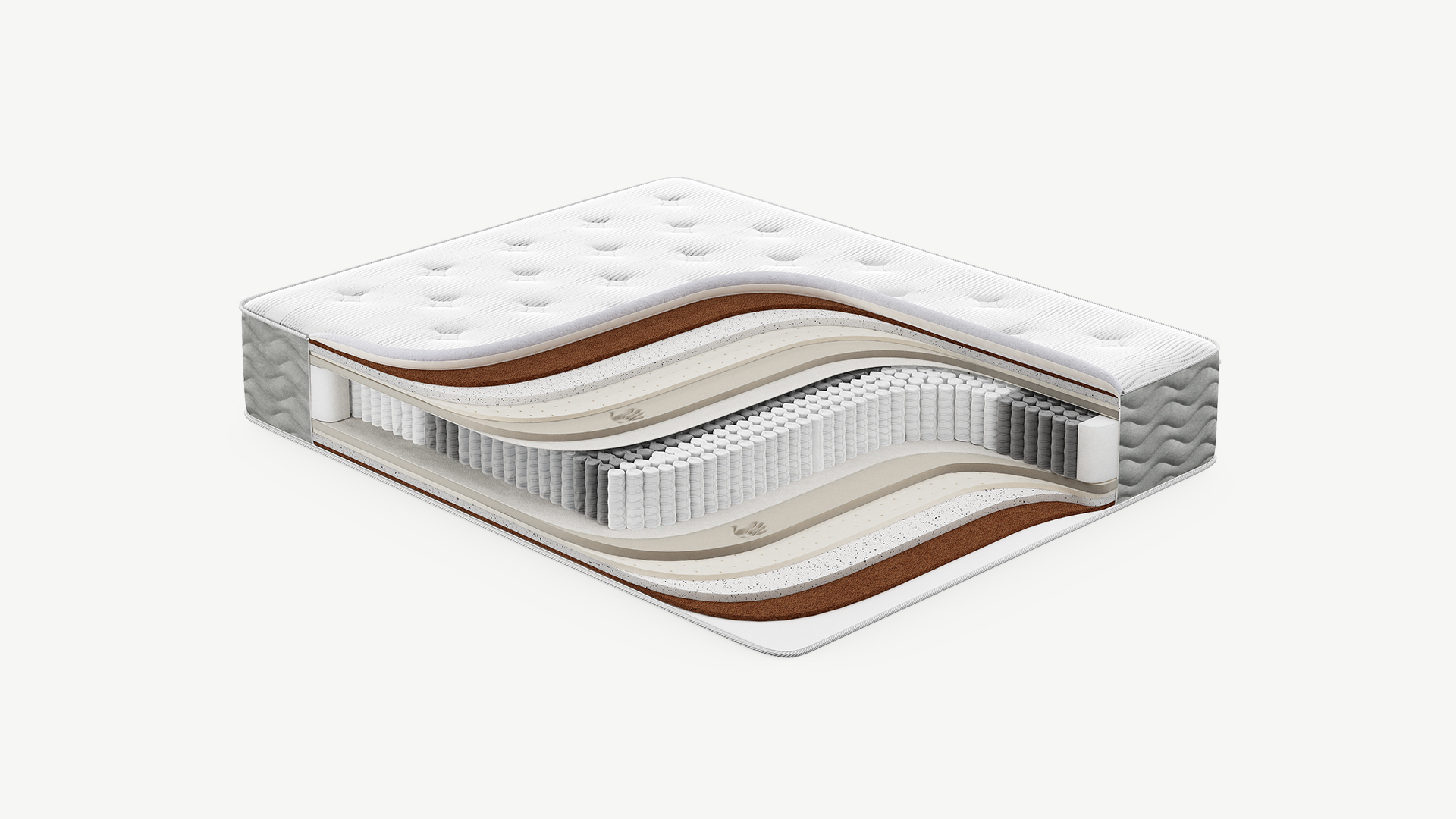 Значительно повышает жесткость спального места, обеспечивает равномерную поддержку тела во время сна. Полностью состоит из натуральных материалов. Добавляет прочности всей конструкции матраса.