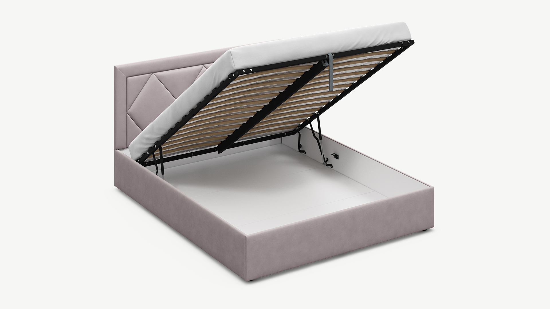 Газовый амортизатор подъёмного механизма. Позволяет без лишних усилий плавно и бесшумно поднять спальное место кровати и получить доступ к емкости для хранения.