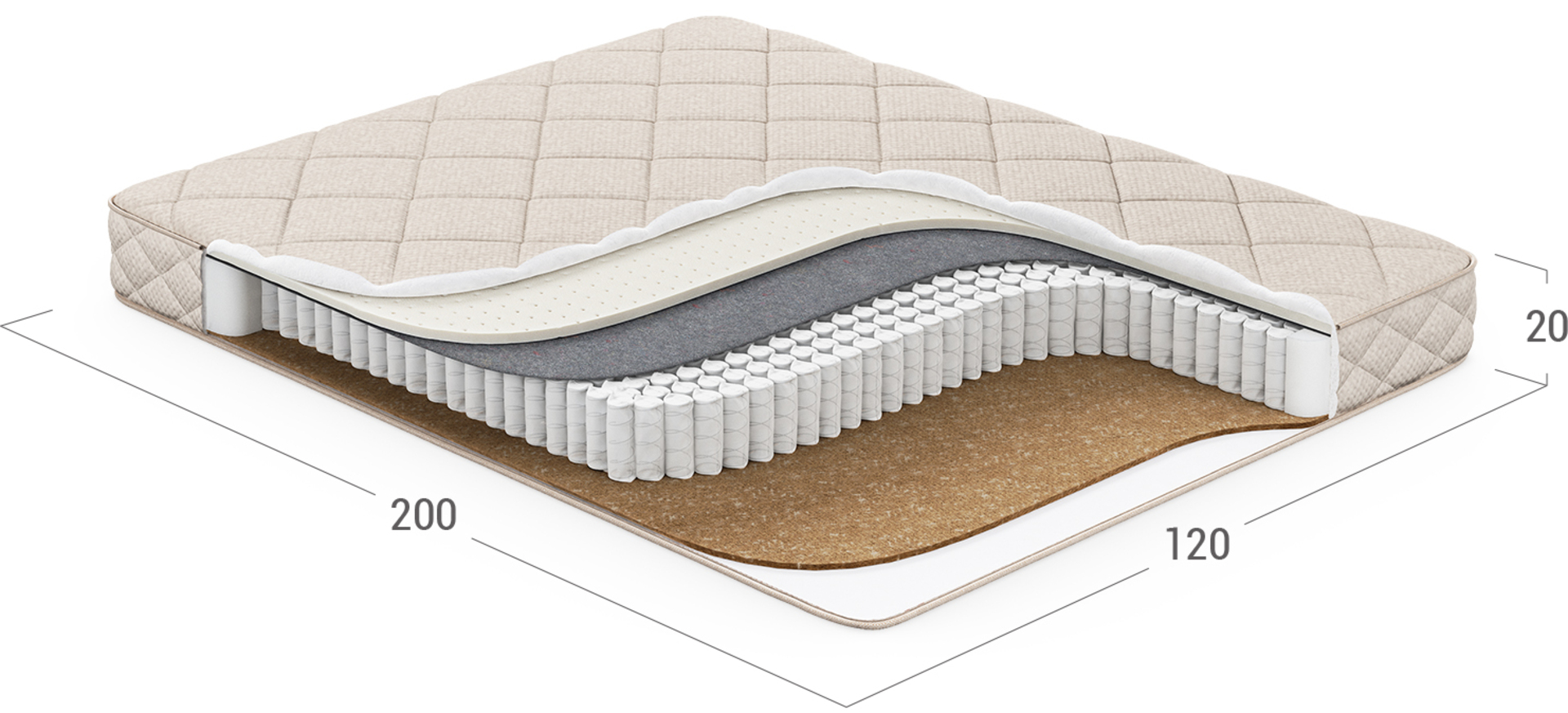 Матрас с натуральными слоями имеет высокие анатомические характеристики. Латекс в составе придает особую упругость спальному месту.