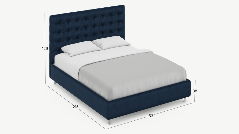 Дизайн MOON 1155 излучает обаяние и роскошь. Центральный элемент кровати, оформленный каретной стяжкой, безупречно сочетается с лаконичной геометрией царг, создавая впечатляющий рельеф. Изголовье респектабельно воплощает идею аристократической элегантности: просыпайтесь и засыпайте, подобно монаршим особам!